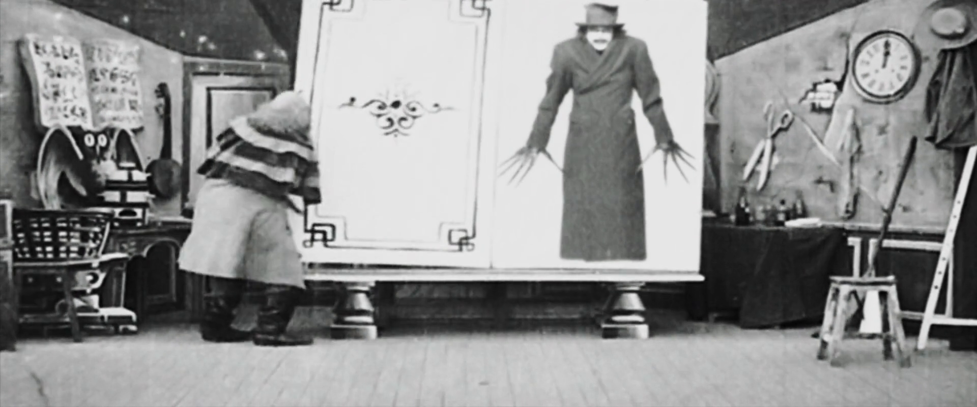 Com a citação do maravilhoso Le livre magique (1900), de Georges Méliès (cujo Un homme de tête, de 1898, também pude reconhecer), The Babadook vincula, de forma bastante complexa, o tema da passagem da fronteira entre livro e realidade, com o qual Méliès brinca generosamente, ao problema da indeterminação da fronteira que separa a realidade de Amelia das imagens fantasmagóricas que a perturbam. Vemos a figura do monstro Babadook dentro das páginas do livro mágico que, na vista cinematográfica original de Méliès, abriga incontáveis figuras. É como se o monstro Babadook, que é o fantasma do pai, que é o luto pela morte do pai, invadisse não apenas a casa de Amelia e Samuel, mas seu olhar, as imagens que ela vê na tela da televisão, até se instalar, finalmente, em seu corpo.